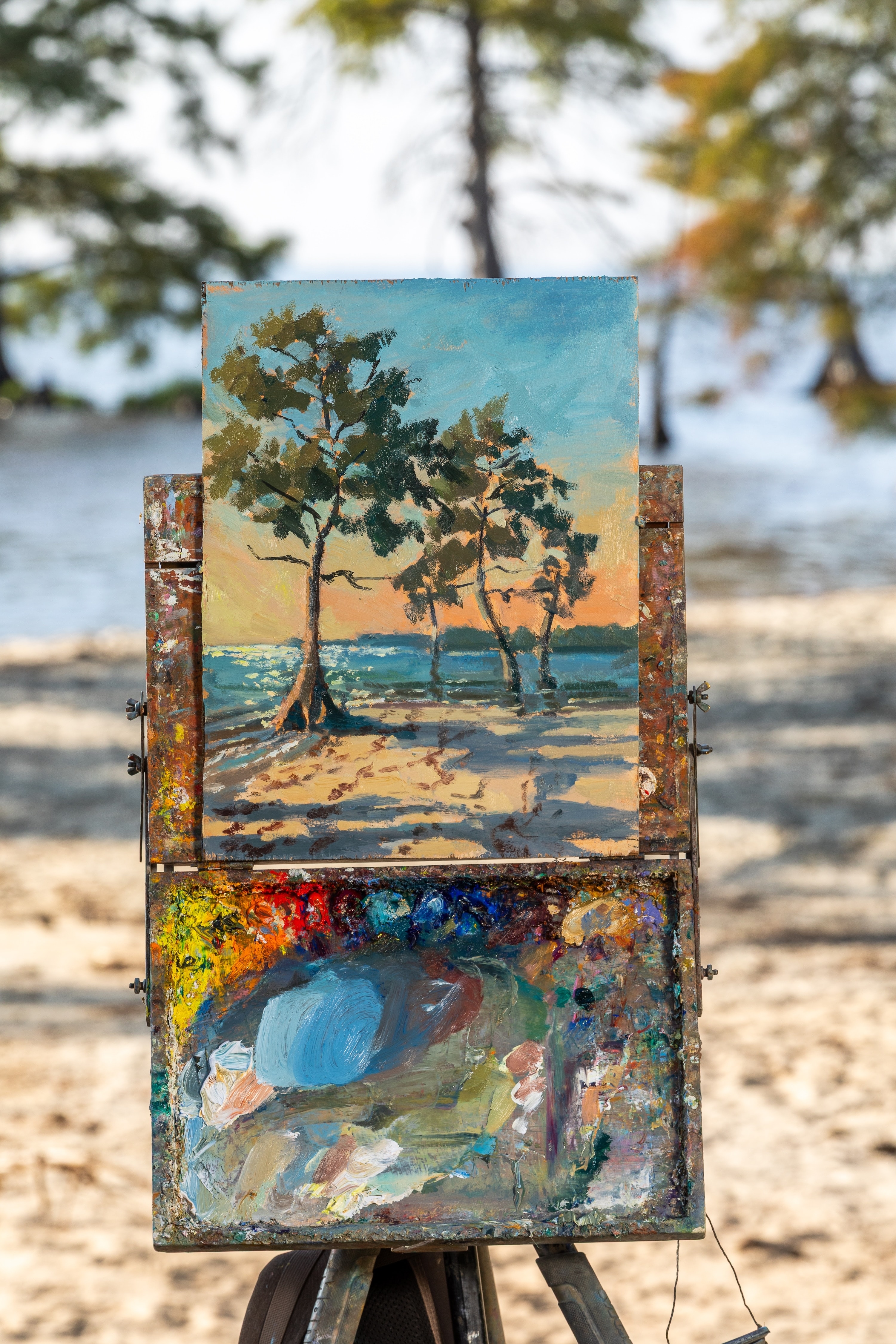 The light doesn’t last for long. The colors dim in the looming dusk, and Fen Rascoe knows he must catch them before they vanish. His paintbrush is tipped with ochre, the color of a soybean field in winter, as wet and glistening as a bend in the Cashie River. There’s no time to waste. The sun on the horizon and the paint on his palette can’t wait.